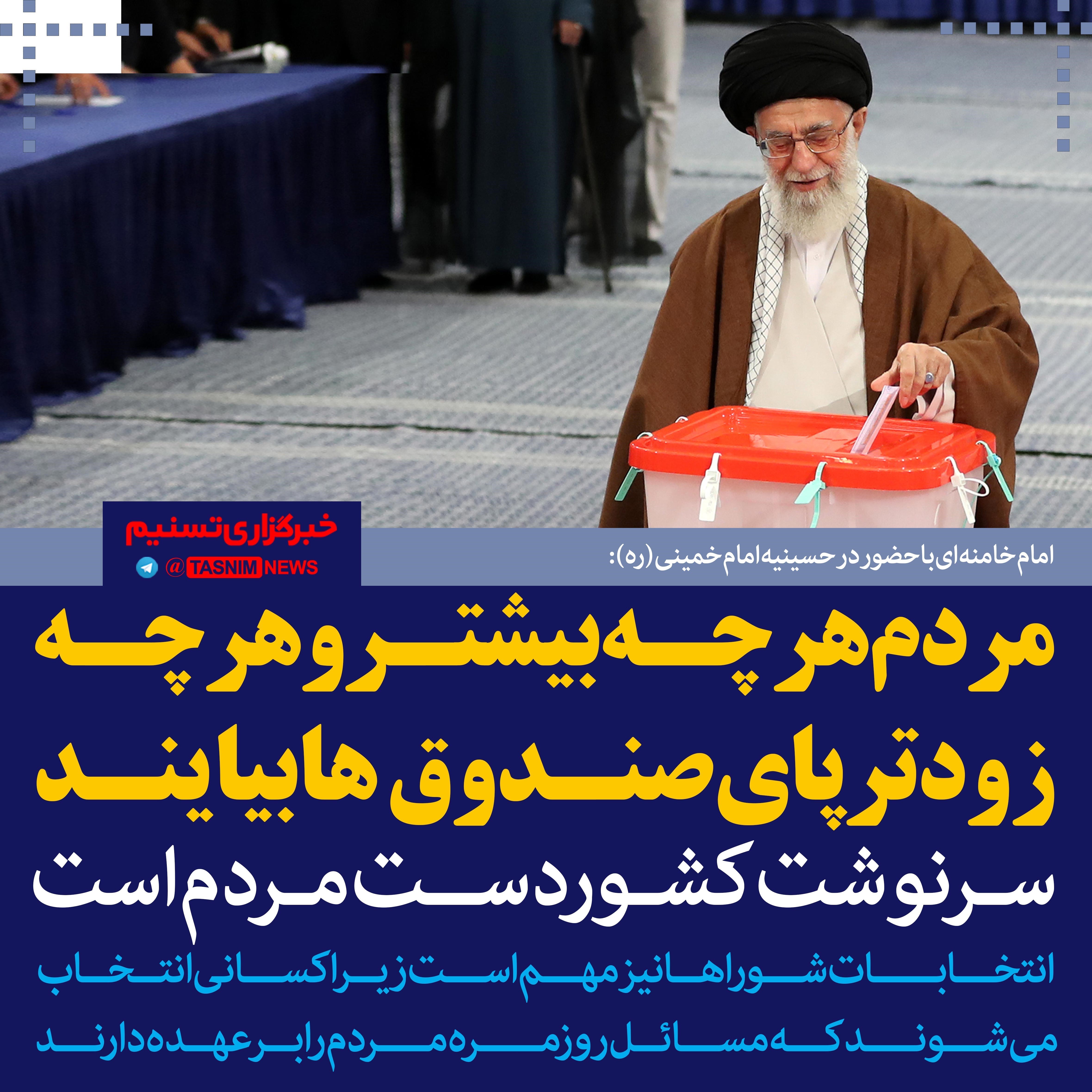 فتوتیتر/امام خامنه ای: مردم ‌هر‌چه‌ بیشتر‌ و‌ هر چه‌ زودتر پای‌ صندوق ها‌ بیایند