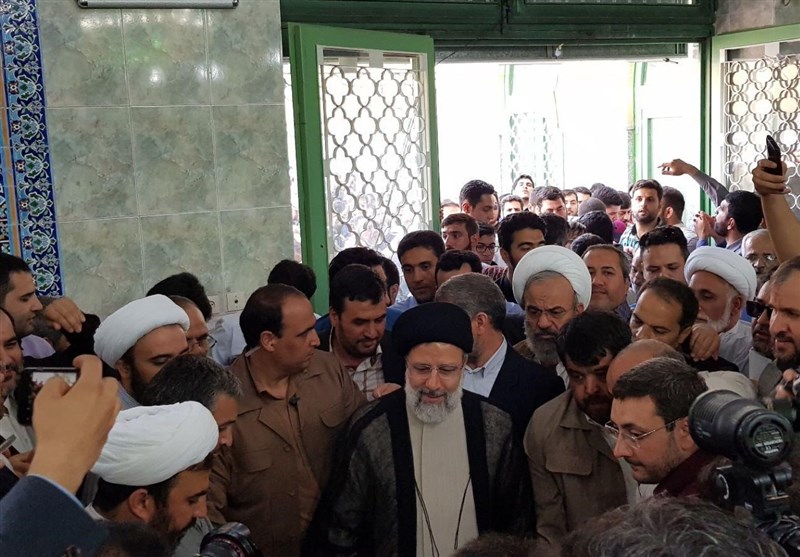 حجتالاسلام رئیسی به همراه همسر خود برای شرکت در انتخابات حضور یافت.