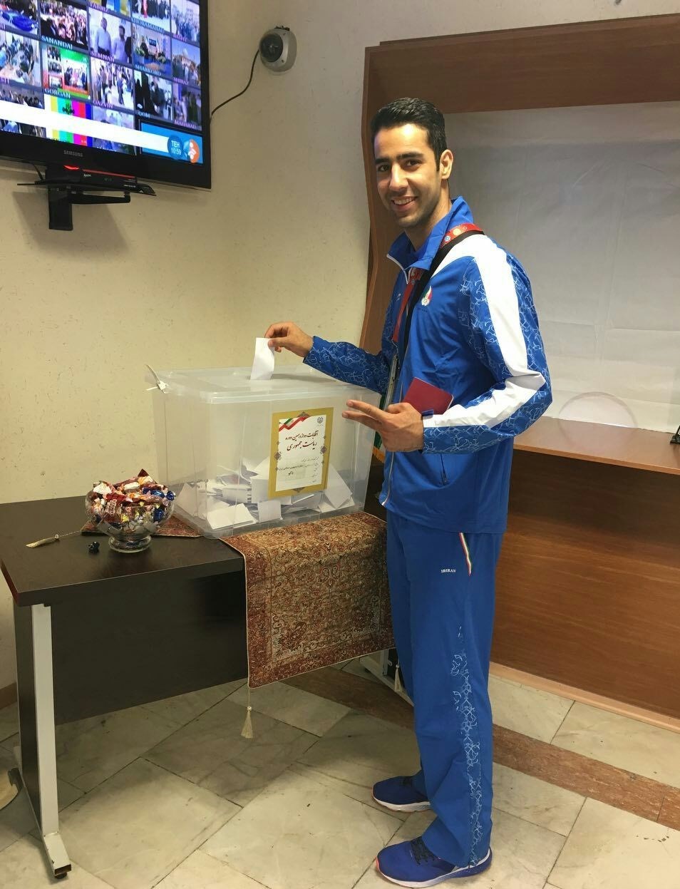 همچنین سپس رئیس فدراسیون جهانی ورزش های زورخانه ای و کشتی پهلوانی، اعضای کادر فنی و ورزشکاران رشته دوومیدانی جمهوری اسلامی ایران، بازیکنان تیم ملی بوکس و همراهان کاروان کشورمان در بازی های همبستگی کشورهای اسلامی صبح امروز با حضور در سفارت ایران در باکو، آرای خود را برای انتخاب رییس جمهور به صندوق انداختند.