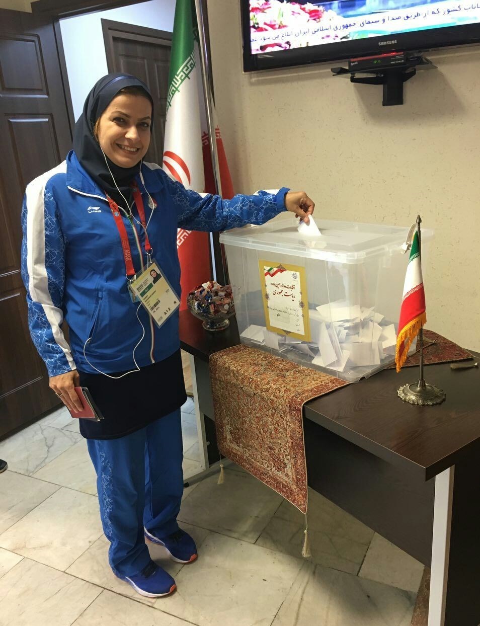 به گزارش خبرنگار اعزامی خبرگزاری تسنیم از باکو، وررزشکاران کاروان ایران در چهارمین دوره بازیهای کشورهای اسلامی که در شهر باکو آذربایجان در حال برگزاری است با حضور در کنسولگری ایران در انتخابات ریاست جمهوری شرکت کردند.