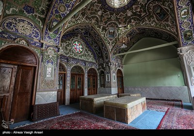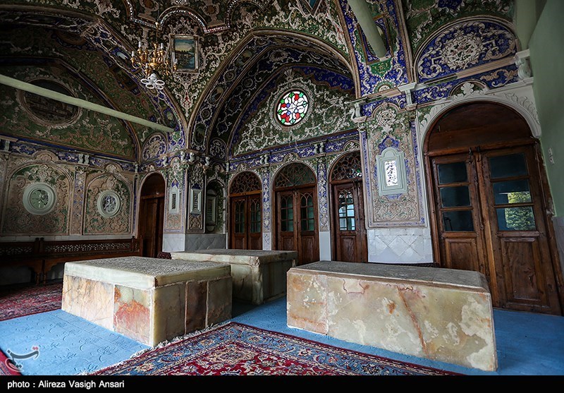 سید توضیح میدهد اتاقی که هم اکنون مقبره این چند نفر است به دلیل گچبری های زیبا و نقاشی های اطراف ان یکی از استراحت گاه های ناصرالدین شاه بوده و این در حالی است که جعفری زند معتقد است اصفهان به دلیل داشتن کاخ های متعدد هیچ وقت ناصرالدین شاه چنین فضای کوچکی را برای استراحت و اقامت انتخاب نمیکرده است.