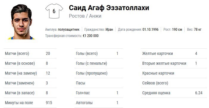 سعید عزتاللهی کمتر از میلاد محمدی و سردار آزمون در لیگ برتر روسیه فرصت بازی یافت. او فصل را با تیم روستوف آغاز کرد اما در نقلوانتقالات زمستانی اروپا به صورت قرضی راهی تیم آنژی شد. عزتاللهی در 20 بازی برای تیمهای روستوف و آنژی به میدان رفت. در 8 بازی بازیکن ترکیب اصلی بود. در 8 بازی تعویض شد و 12 بار هم به عنوان بازیکن تعویضی در ترکیب تیمهایش قرار گرفت. 3 گل، 8 پاس گل و 915 دقیقه حضور در زمین حاصل عملکرد سعید عزتاللهی در فصل اخیر لیگ برتر روسیه است. 4 کارت زرد و یک کارت قرمز دریافت کرد. نمره فنی عزتاللهی در خبرگزاری چمپیونات روسیه 6.24 (متوسط) است.