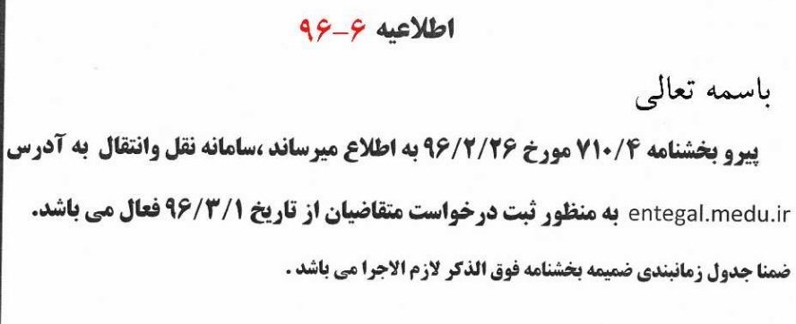سامانه نقل و انتقال فرهنگیان از امروز (اول خرداد 96) فعال می‌شود.
