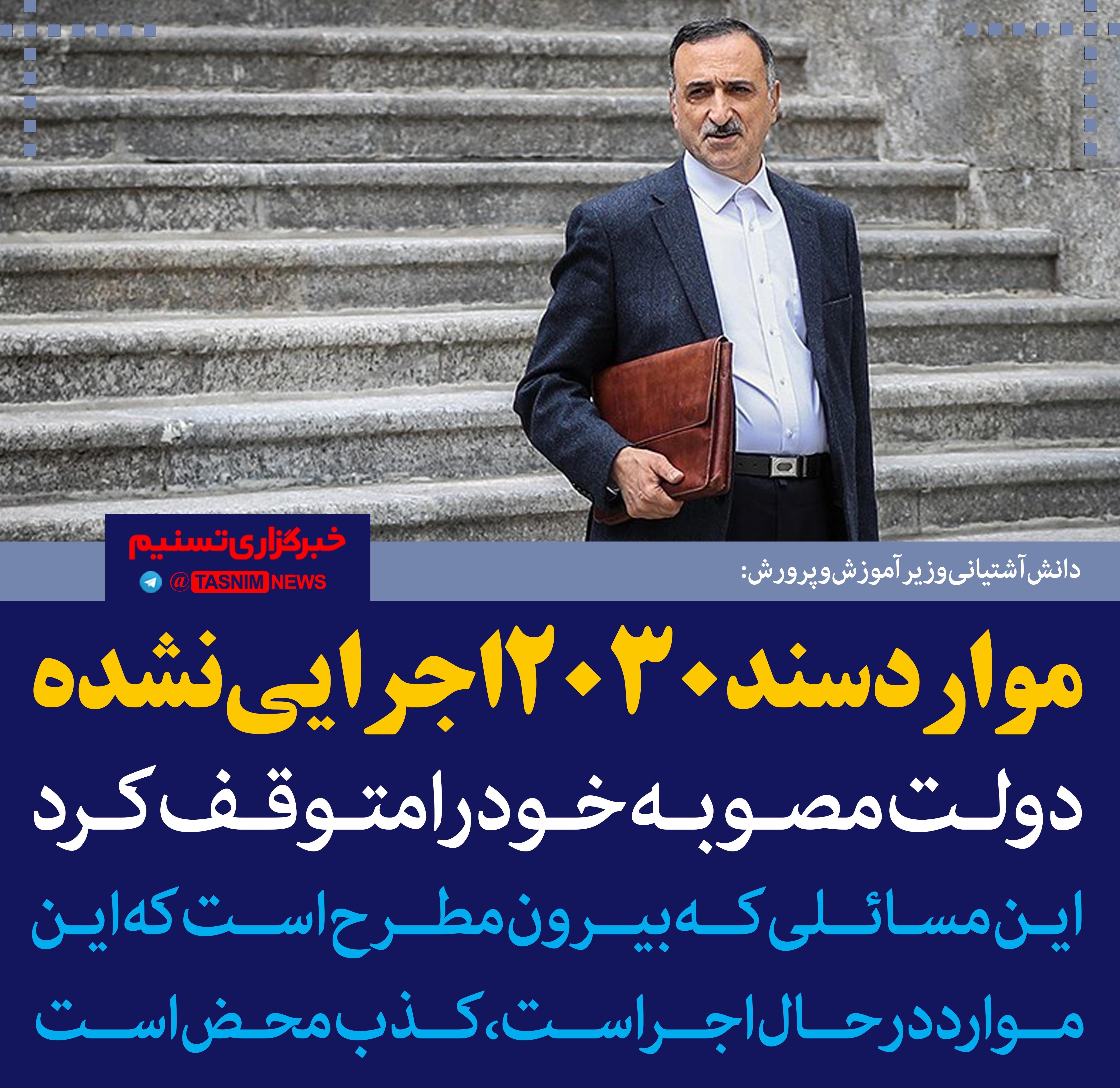 دانش‌آشتیانی درباره اجرای سند 2030 از سوی وزارت آموزش و پرورش گفت: موارد سند 2030 اجرایی نشده است.