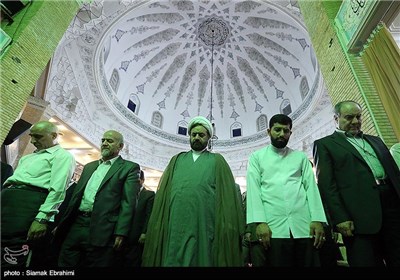 با نوای گرم قاریان قرآن اهوازی نوای تلاوت آیات نور طنین انداز میشود و حاضران در گوشه و کنار مسجد آیه آیه کلام الله مجید را همنوا با قاریان زمزمه میکنند.