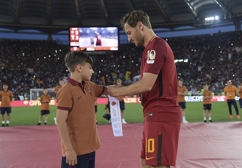 «گلادیاتور» که با چشمانی اشکآلود مقابل دیدگان 70 هزار نفر در ورزشگاه المپیک شهر رم، کفشهایش را آویخت، در بخشی از مراسم وداعش با هواداران جالوروسی در حرکتی نمادین بازوبند خود را به ماتیا آلماویوا، کاپیتان تیم زیر 15 سال رم داد.