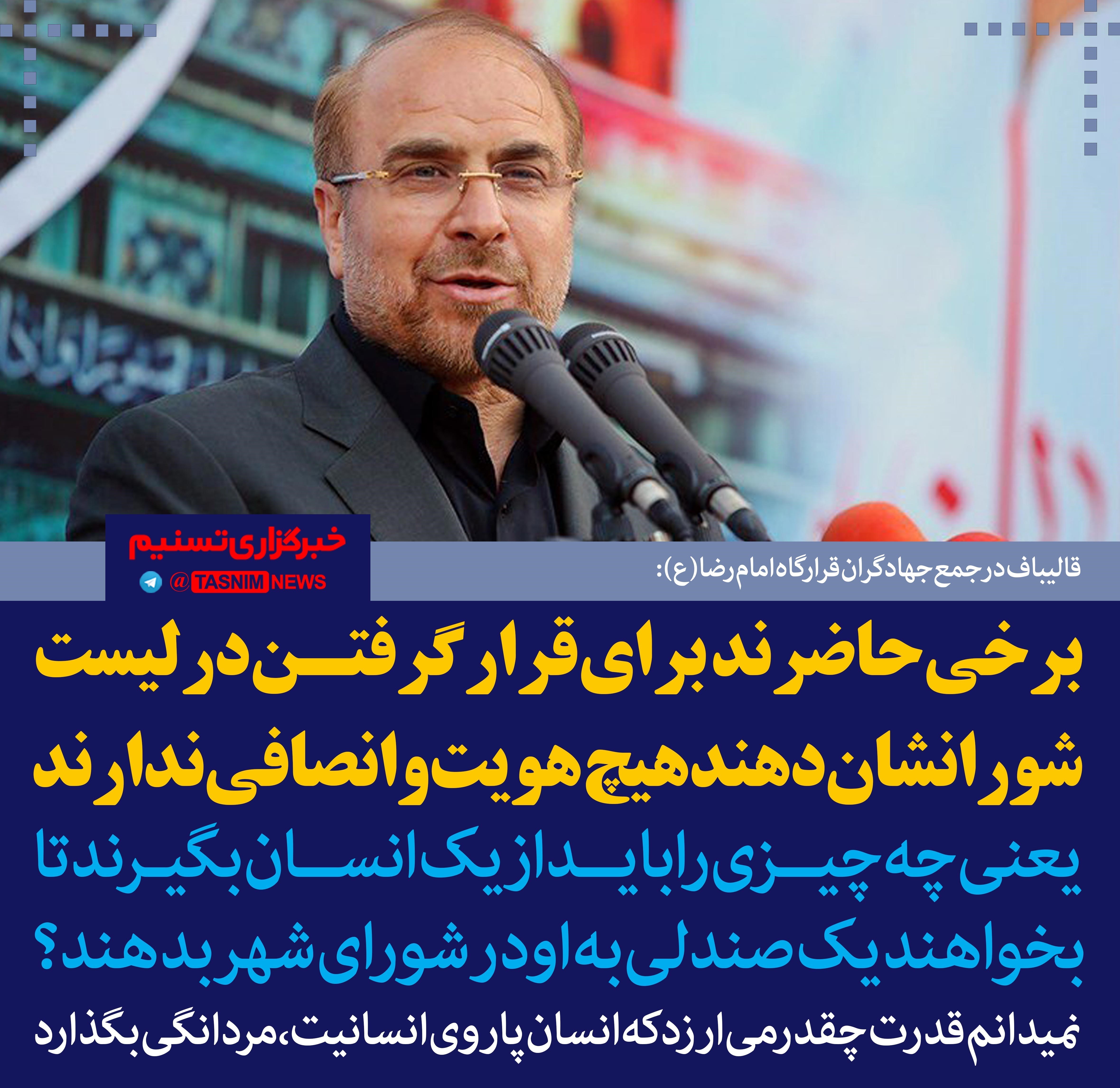 فتوتیتر/قالیباف:برخی حاضرند برای قرار گرفتن در لیست شورا، نشان دهند هیچ هویت و انصافی ندارند