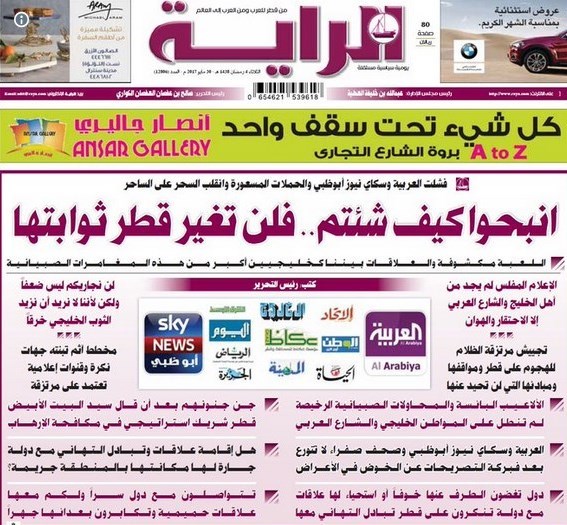 با اینهمه تیتر روزنامه الرایه بیش از سایر روزنامه های قطری جلب توجه می کرد؛ این روزنامه مطلبی را با این عنوان منتشر کرد: هرطور می خواهید زوزه بکشید و پارس کنید، قطر اصول خود را تغییر نخواهد داد».