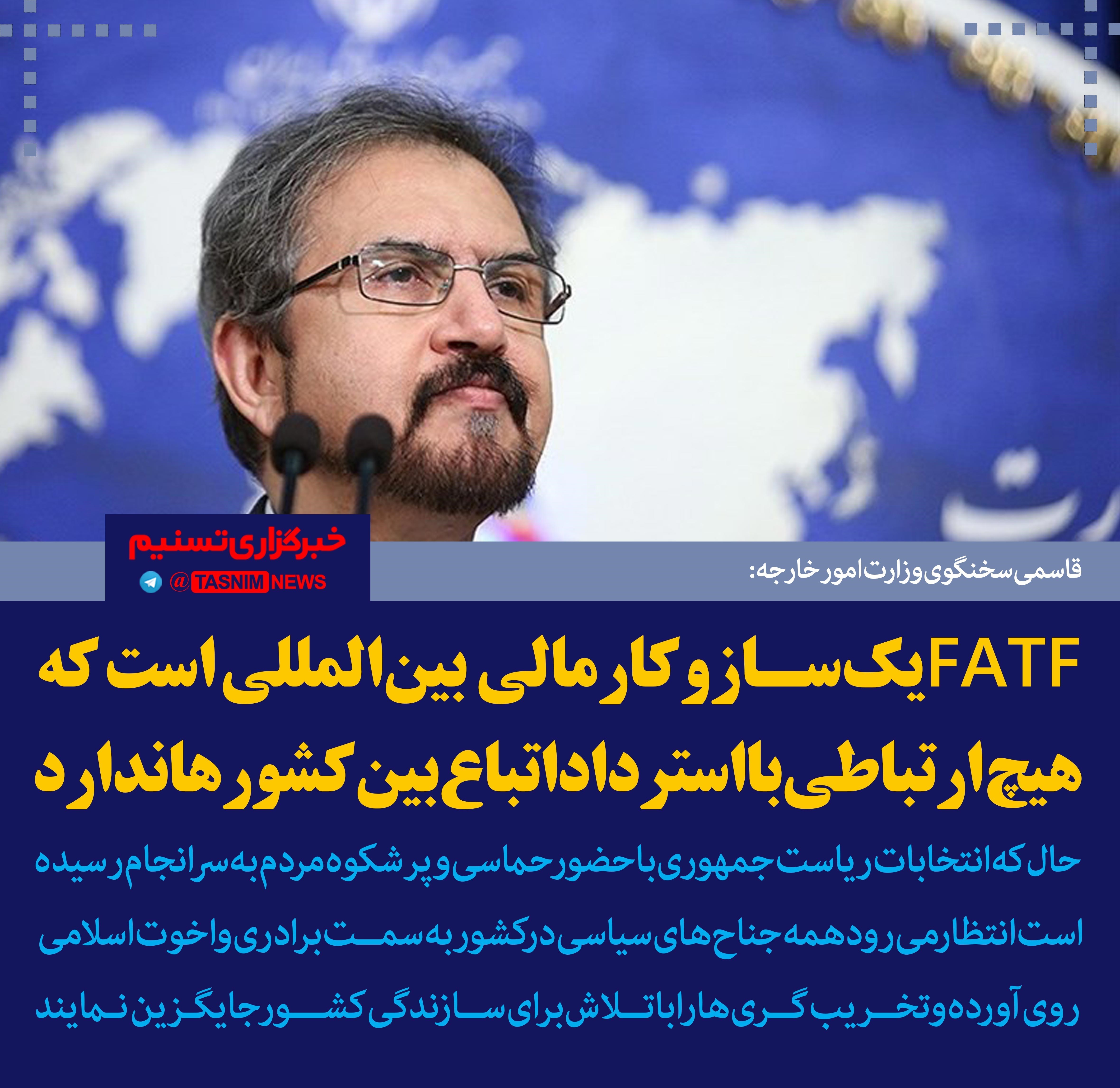 فتوتیتر/قاسمی:FATF یک سازوکار مالی بین‌المللی است که هیچ ارتباطی با استرداد اتباع بین کشورها ندارد