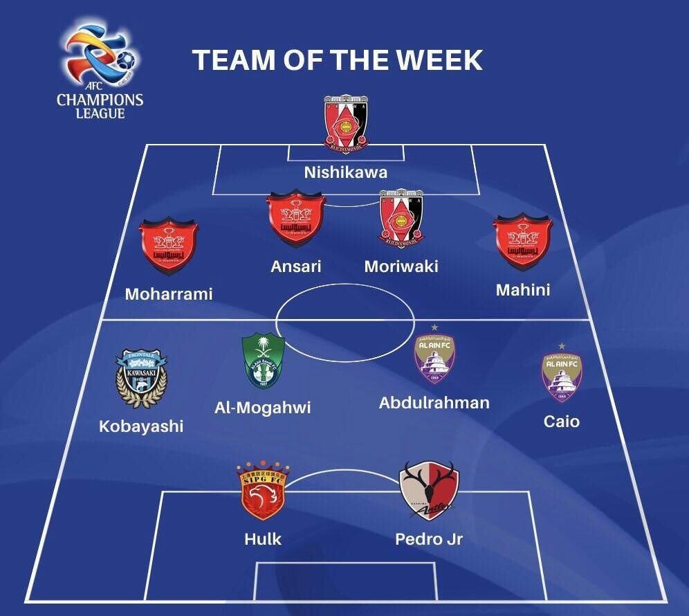 نیشی کاوا (دروازه‌بان اوراوارد دایاموندز ژاپن)، موریواکی (مدافع میانی اوراوارد دایاموندز ژاپن)، کوابایاشی (بال راست کاوازاکی فرونتاله)، المقهوی (هافبک الا‌هلی عربستان)، عمر عبدالرحمن (هافبک العین امارات)، کایو (هافبک العین)، هالک (مهاجم شانگهای اس‌‌آی‌پی‌جی) و پدرو جونیور (مهاجم کاشیما آنتلرز).