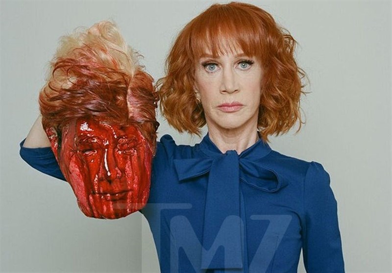 به گزارش گروه بین الملل خبرگزاری تسنیم به نقل از نشریه «هیل» چاپ کنگره آمریکا، «تایلر شیدلز» عکاس مشهور آمریکایی عکسی از «کتی گریفین» کمدین و تهیه کننده آمریکایی منتشر کرده در حالی که گریفین ماکتی از سر بریده و خونین «دونالد ترامپ» رئیس جمهور آمریکا را به دست گرفته است.