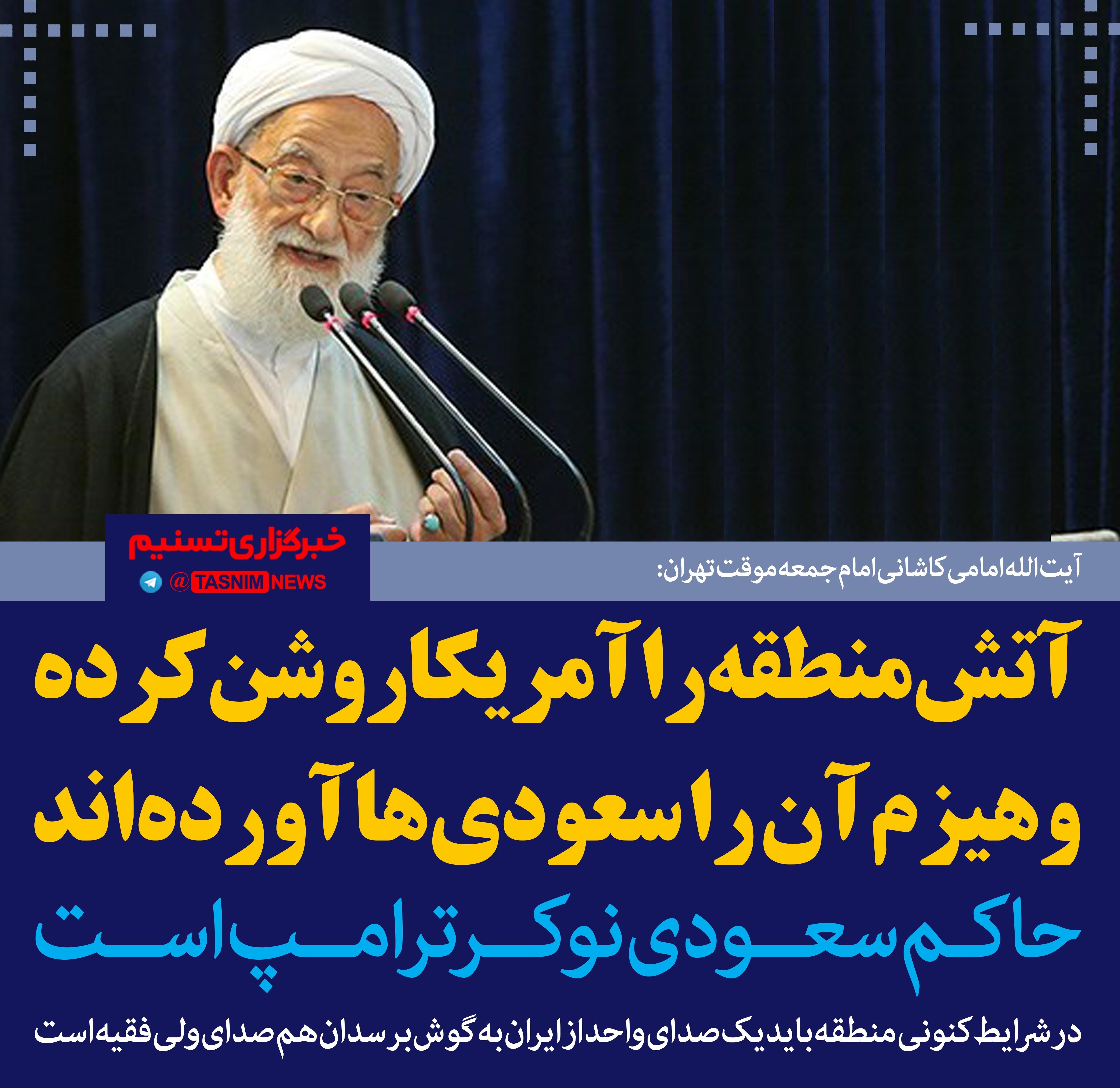 خطیب این هفته نماز جمعه تهران گفت: آتش منطقه را آمریکا را روشن کرده و هیزم آن را حاکمان سعودی آورده‌اند. دنیای اسلام باید به هوش بیاید و بیدار شود.