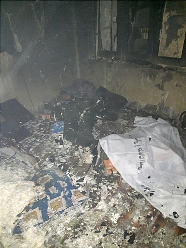 نیروهای آتش‌نشانی هنگام خاموش کردن شعله‌های آتش در طبقات با اجساد بی‌جان دو مرد سی و چهل ساله مواجه شدند که داخل اتاق طبقه دوم و پاگرد بین دو طبقه این منزل افتاده بودند.