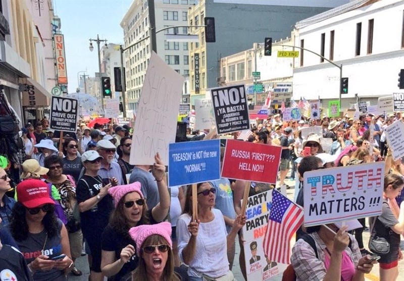 به گزارش گروه بین الملل خبرگزاری تسنیم به نقل از نشریه «هیل» چاپ کنگره آمریکا، معترضان آمریکایی روز گذشته (شنبه) در بیش از 130 شهر در سراسر آمریکا به خیابان ها آمدند و با برپایی «تظاهرات برای حقیقت»، خواستار تشکیل یک کمیسیون مستقل برای تحقیق درباره تبانی احتمالی بین ستاد انتخاباتی «دونالد ترامپ» رئیس جمهور آمریکا با روسیه شدند.