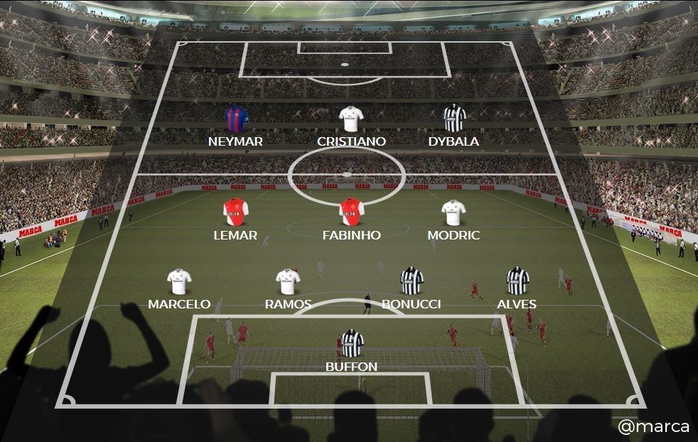 در تیم منتخب فرانس فوتبال کریستیانو رونالدو(رئال مادرید)، نیمار (بارسلونا) و پائولو دیبالا(یوونتوس) در خط حمله قرار دارند، توماس لمار و فابینیو (هر دو از موناکو) و لوکا مودریچ (رئال مادرید) در خط میانی هستند و مارسلو و سرخیو راموس (هر دو از رئال مادرید) و لئوناردو بونوچی و دنی آلوز (هر دو از یوونتوس) خط دفاعی چهار نفره تیم را تشکبل میدهند. جان لوئیجی بوفون، سنگربان یوونتوس هم به عنوان بهترین دروازهبان این فصل از رقابتها در ترکیب تیم منتخب فرانس فوتبال قرار گرفته است.