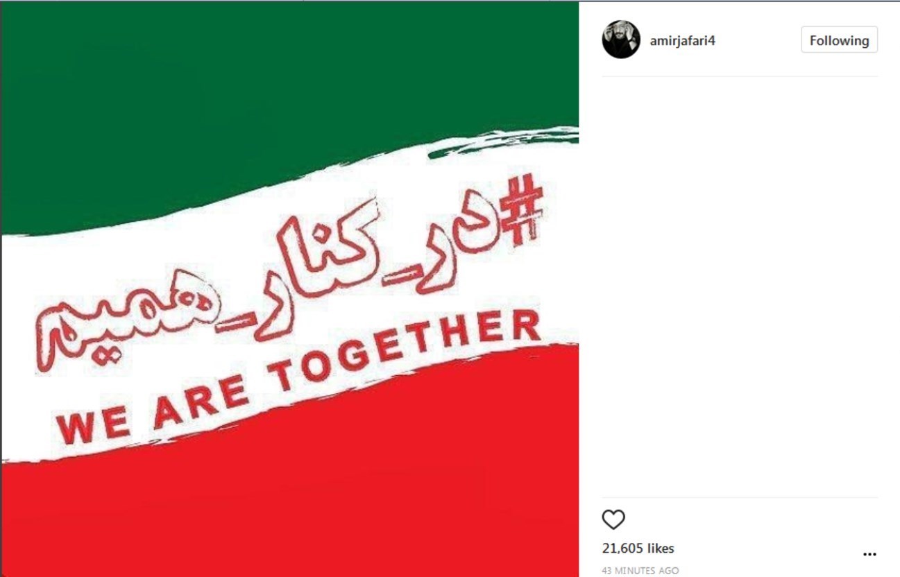 به گزارش گروه رسانه های خبرگزاری تسنیم، صبح امروز عناصر تروریستی با ورود به مجلس شورای اسلامی و حرم امام خمینی(ره) اقدام به تیراندازی و انجام عملیات انتحاری کردند که در پی این حملات تعدادی از هموطنان مان زخمی شده و چند نفر هم به شهادت رسیدند. به دنبال این حادثه تروریستی بسیاری از افراد سرشناس در شبکههای اجتماعی واکنش نشان دادند و با هشتگ #در_کنار_همیم اتحاد خود برای مقابله با این حادثه تروریستی را نشان دادند.