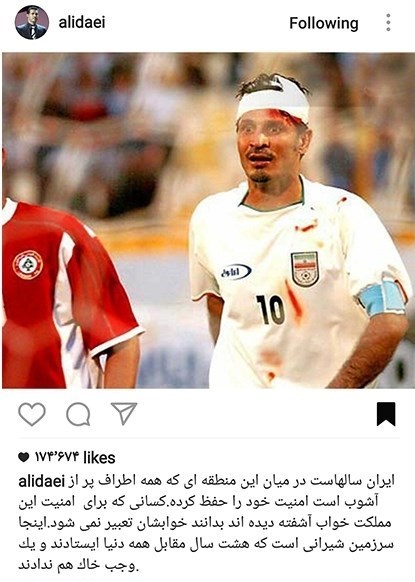 به گزارش گروه رسانه های خبرگزاری تسنیم، علی دایی، کاپیتان وسرمربی اسبق تیم ملی فوتبال ایران در واکنش به حودث تروریستی روز گذشته پایتخت، در صفحه شخصی اینستاگرامش نوشت: ایران سال هاست در میان این منطقه اى که همه اطراف پر از آشوب است امنیت خود را حفظ کرده.