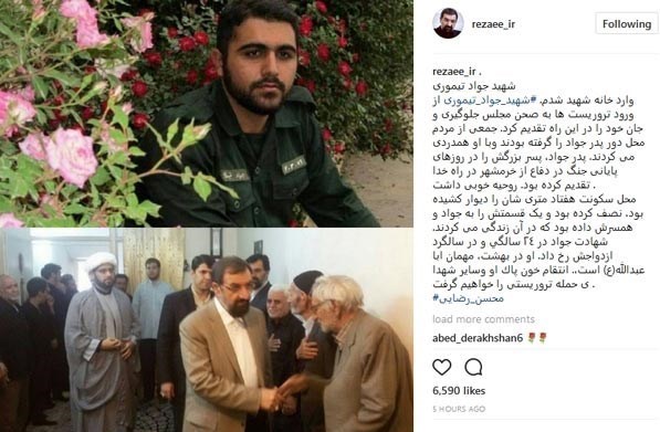 به گزارش گروه رسانههای خبرگزاری تسنیم، محسن رضایی، دبیر مجمع تشخیص مصلحت نظام عصر روز پنجشنبه با حضور در منزل شهید جواد تیموری، با خانواده این شهید پاسدار که در عملیات تروریستی روز چهارشنبه در مجلس شورای اسلامی به شهادت رسید، دیدار کرد.