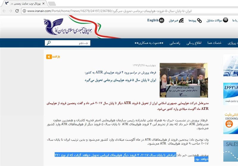 فرهاد پرورش ، مدیر عامل و رئیس هیات مدیره هواپیمایی جمهوری اسلامی ایران ، در روز 27 اردیبهشت 96 طی نشست خبری که در حاشیه مراسم ورود هواپیماهای ATR به ایران برگزار شد اظهار داشت : "ایرانایر تا پایان سال 2017، 4 فروند دیگر هواپیمای ایرباس تحویل خواهد گرفت که از نوع 320 خواهد بود. "