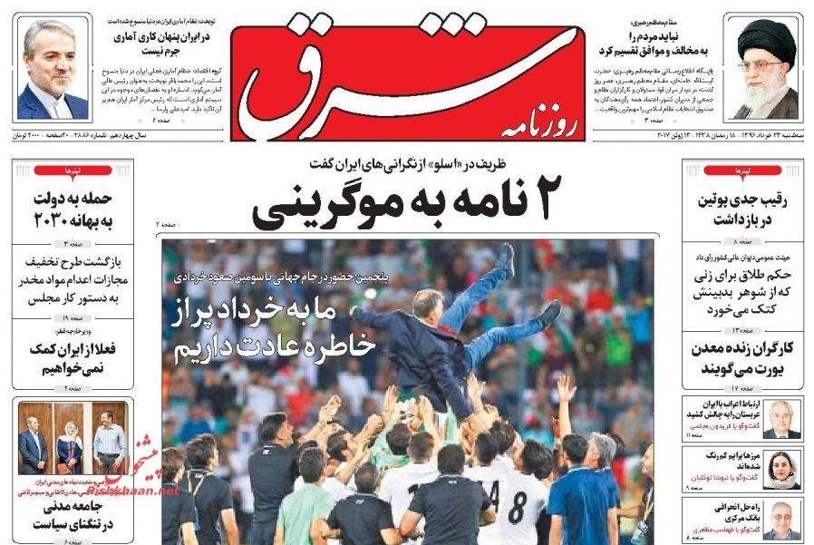 تصاویر صفحه اول روزنامه‌های سه‌شنبه 23 خرداد