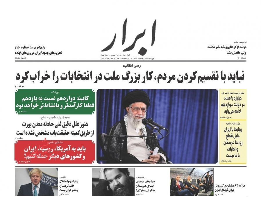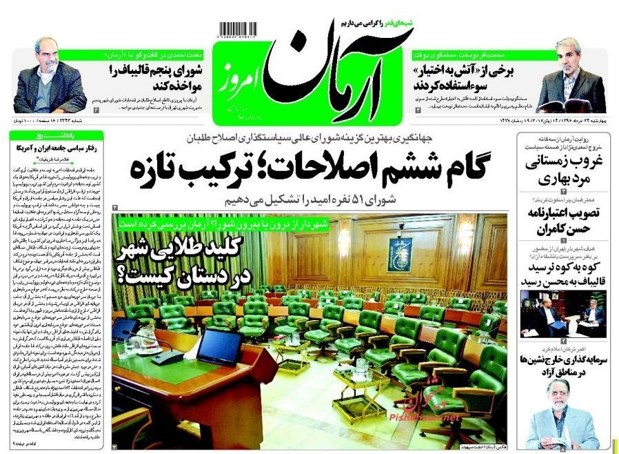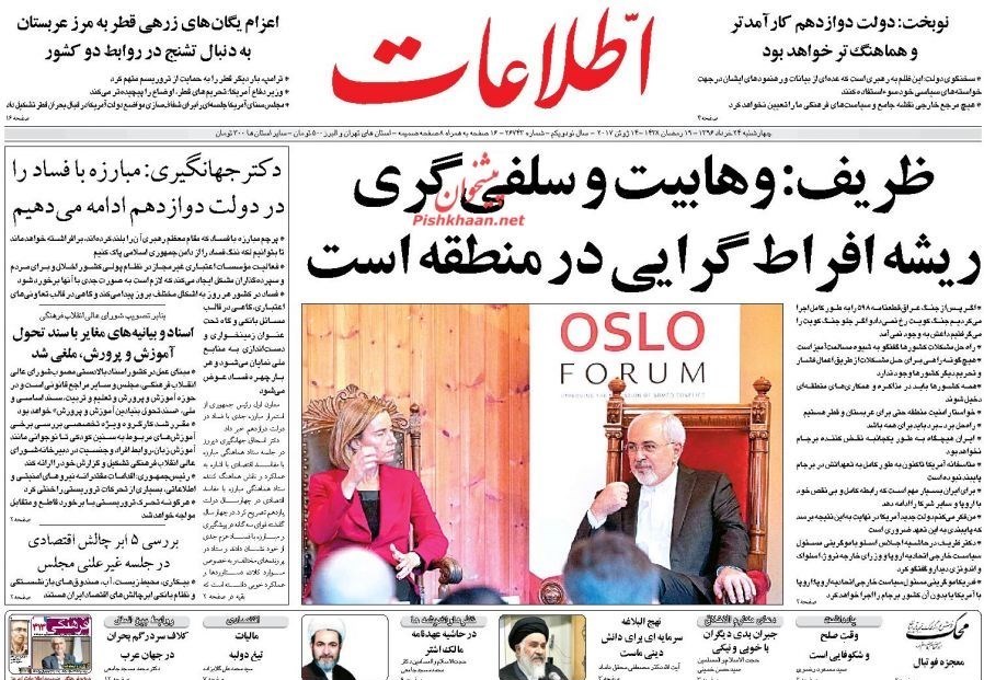 تصاویر صفحه اول روزنامه‌های چهارشنبه 24 خرداد