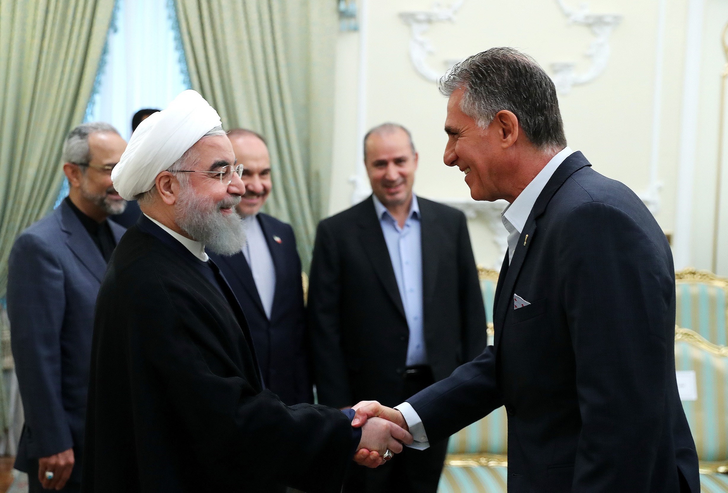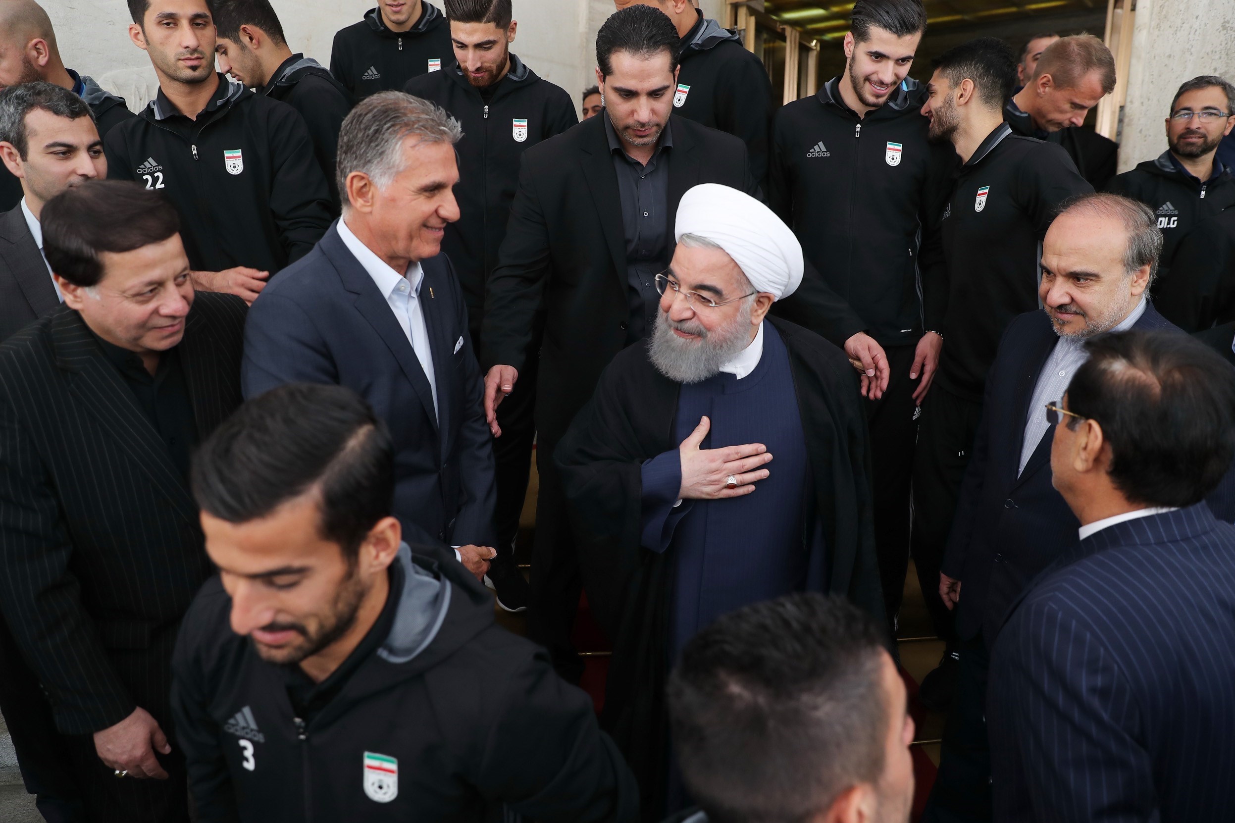 در این دیدار کارلوس کیروش سرمربی تیم ملی فوتبال ایران، مسعود سلطانیفر وزیر ورزش و جوانان، مهدی تاج رئیس فدراسیون فوتبال، محمد نهاوندیان رئیس دفتر رئیسجمهور و بازیکنان تیم ملی فوتبال ایران حضور دارند.