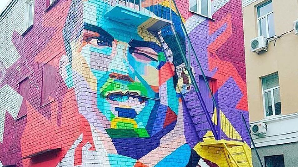 طرح گرافیکی رونالدو 300 متر مربع است که ارتفاع آن 3 طبقه آپارتمان را پوشانده است. از 20 رنگ مختلف نیز در آن استفاده شد.