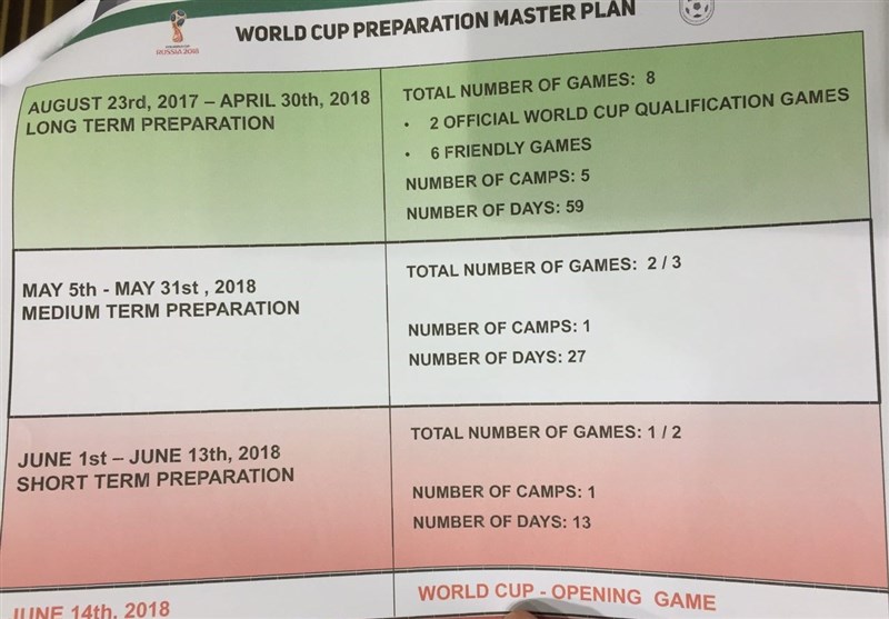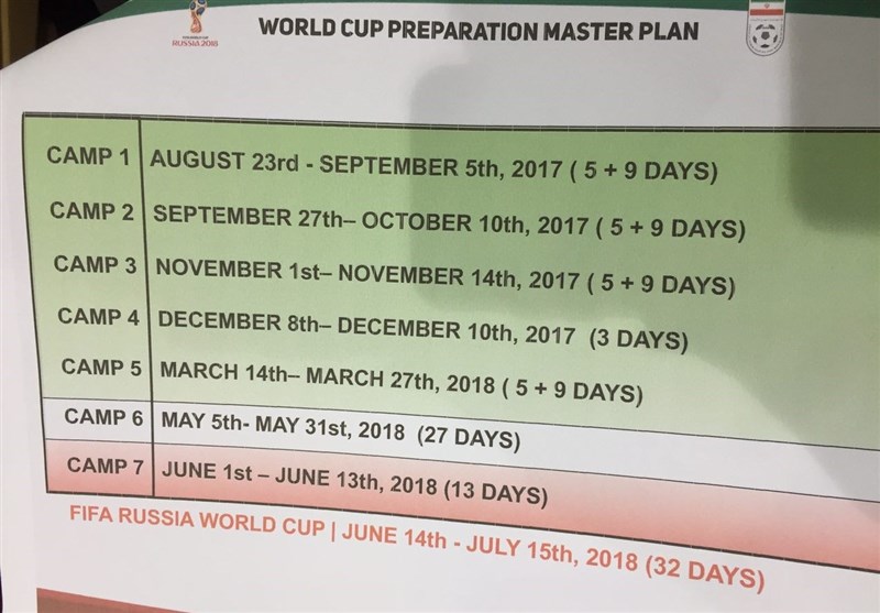 در تصاویر زیر میتوانید زمان اردوها و بازیهای دوستانه تیم ملی را مشاهده کنید:
