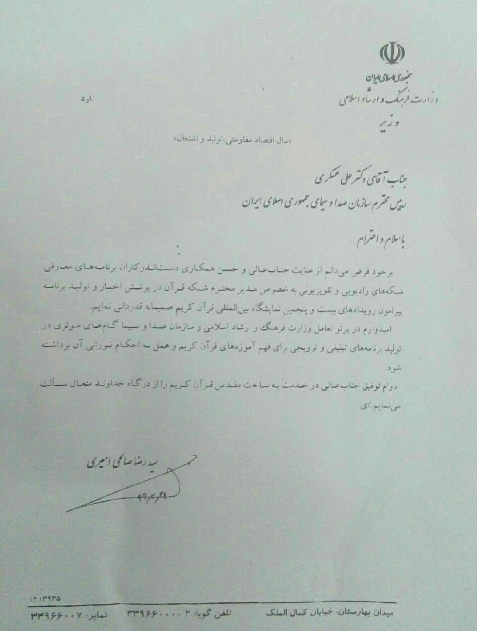 در ادامه تصویر نامه ایشان به رئیس رسانه ملی را مشاهده میکنید.