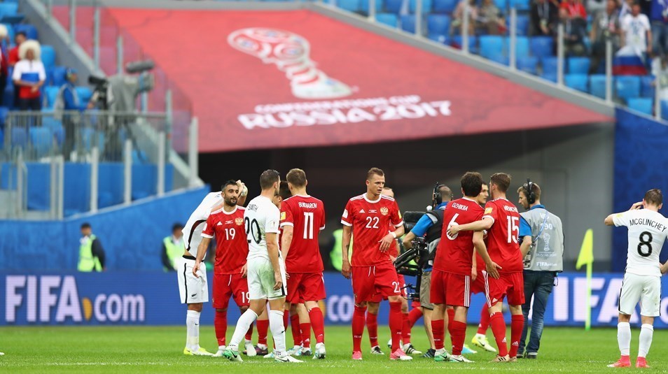 به گزارش خبرگزاری تسنیم، بازی افتتاحیه جام کنفدراسیونهای 2017 امشب (شنبه) میان تیمهای ملی روسیه و نیوزیلند از گروه A برگزار شد که تیم میزبان به برتری 2 بر صفر دست یافت. در دیگر بازی این گروه فردا تیم ملی پرتغال با بهرهمندی از کریستیانو رونالدو در شهر کازان به مصاف مکزیک میرود.