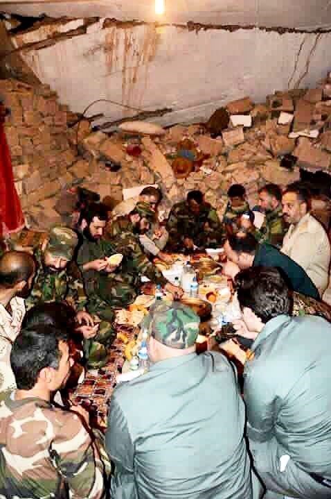 تصویری از افطارى اخیر شیخ اکرم الکعبی دبیرکل مقاومت اسلامى نُجَباء در جمع فرماندهان عراقى در جبهه مقاومت مدافعان حرم در ادامه قابل مشاهده است: