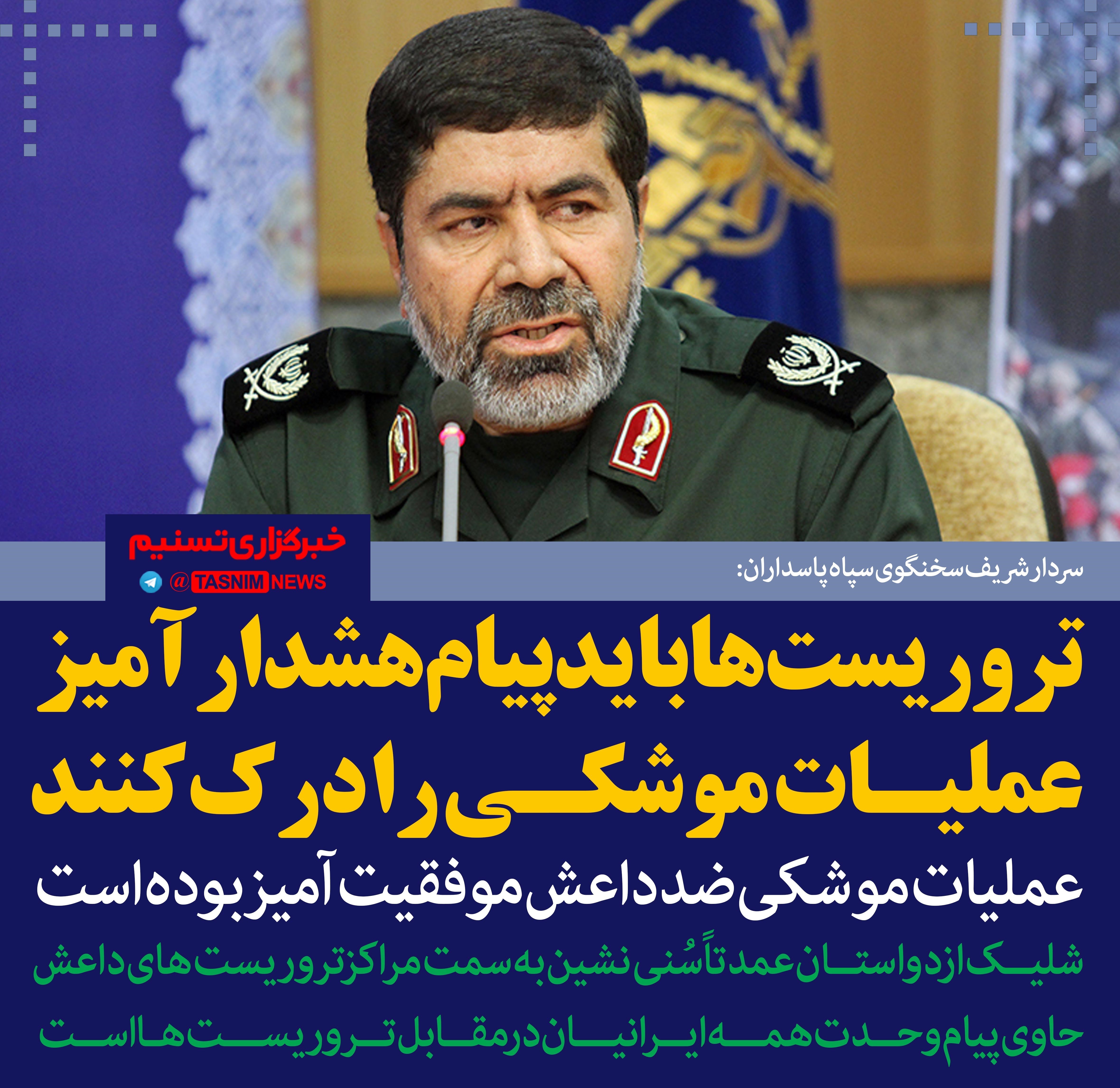 فتوتیتر/سردار شریف:تروریست‌ها باید پیام هشدارآمیز عملیات موشکی را درک کنند