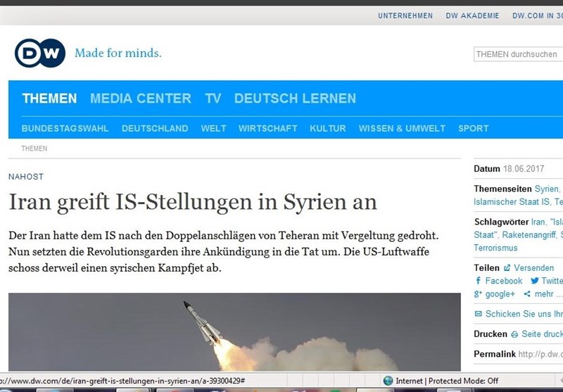روزنامه "دویچه ویرتشافتز ناخریشن" آلمان نیز خبر حملات موشکی سپاه به دیرالزور سوریه را پوشش داد.