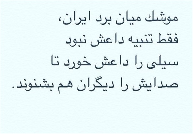 به گزارش گروه سیاسی خبرگزاری تسنیم، شهابالدین طباطبایی عضو شورای مرکزی حزب ندای ایرانیان در صفحه شخصی خود در اینستاگرام با اشاره به حمله موشکی ایران به مقر تروریستهای تکفیری در دیرالزور سوریه، نوشت: موشک میان برد ایران، فقط تنبیه داعش نبود، سیلى را داعش خورد تا صدایش را دیگران هم بشنوند. سپاه مچکریم، اقتدار ایران.