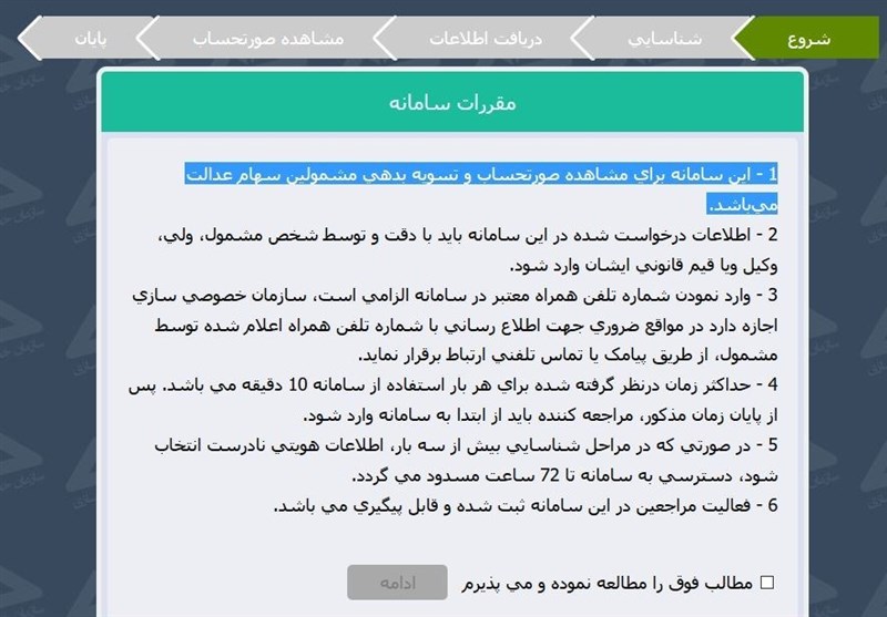 به گزارش خبرنگار اقتصادی خبرگزاری تسنیم؛ مشمولان سهام عدالت برای دریافت سود این سهام باید شماره شبای حساب بانکی خود را در سامانه سهام عدالت به نشانی www.samanese.ir وارد کنند و سهامدار بودن، به خودی خود موجب دریافت سود این سهام نخواهد شد.