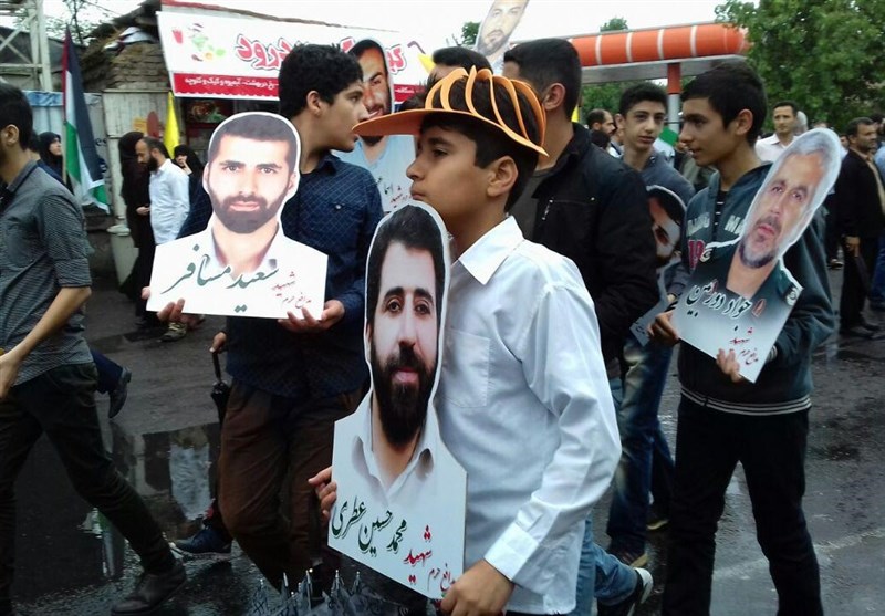 از مرد و زن و پیر و جوان و کودک گیلک از دیار میرزا کوچک خان جنگلی همانند سالهای قبل با حضور پرشور خود زیر باران رحمت الهی انسجام ملی را به رخ جهانیان کشیدند تا بار دیگر در حمایت از مظلومان جهان فریاد برآوردند که قدس فراموش نخواهد شد.
