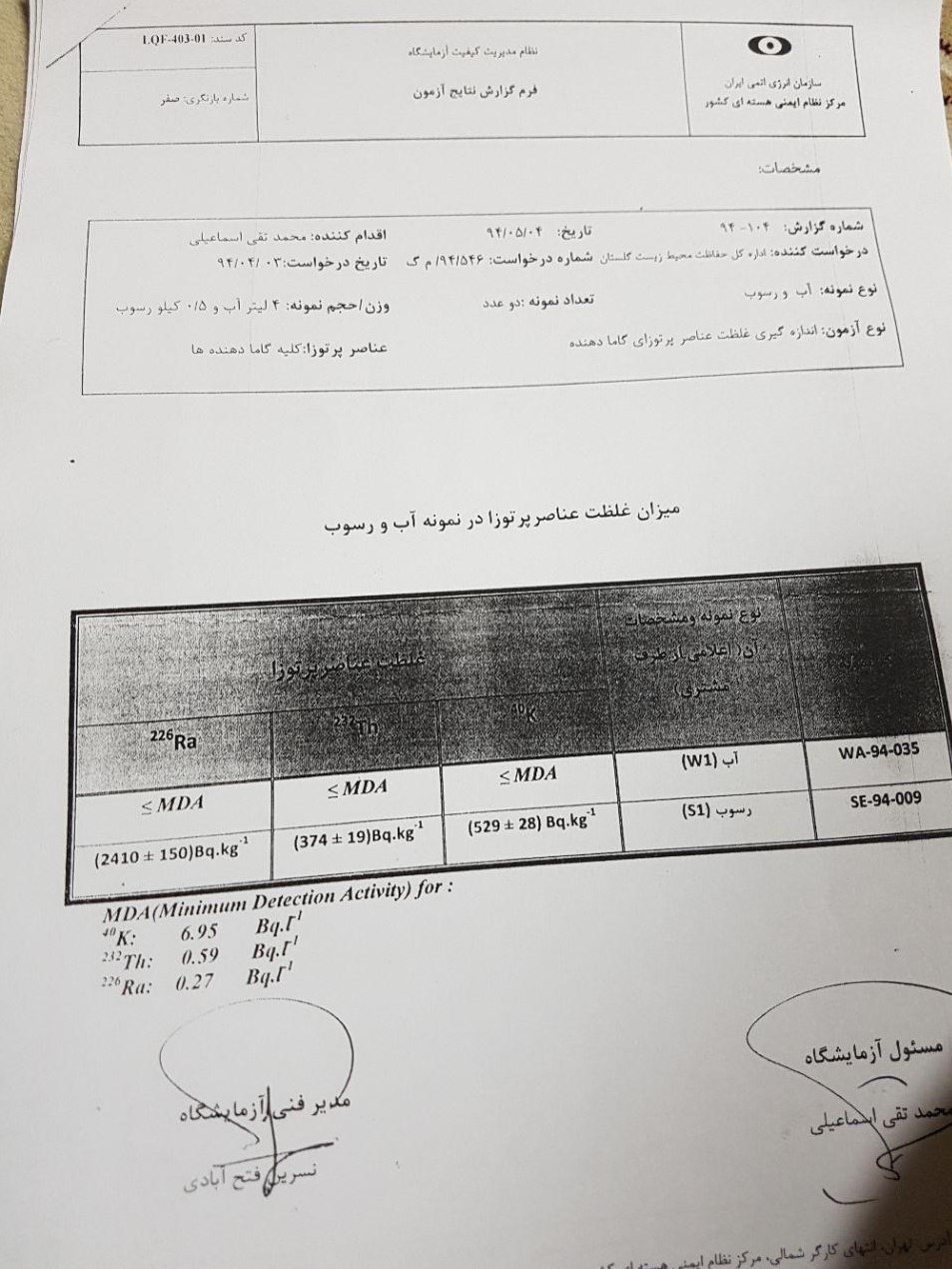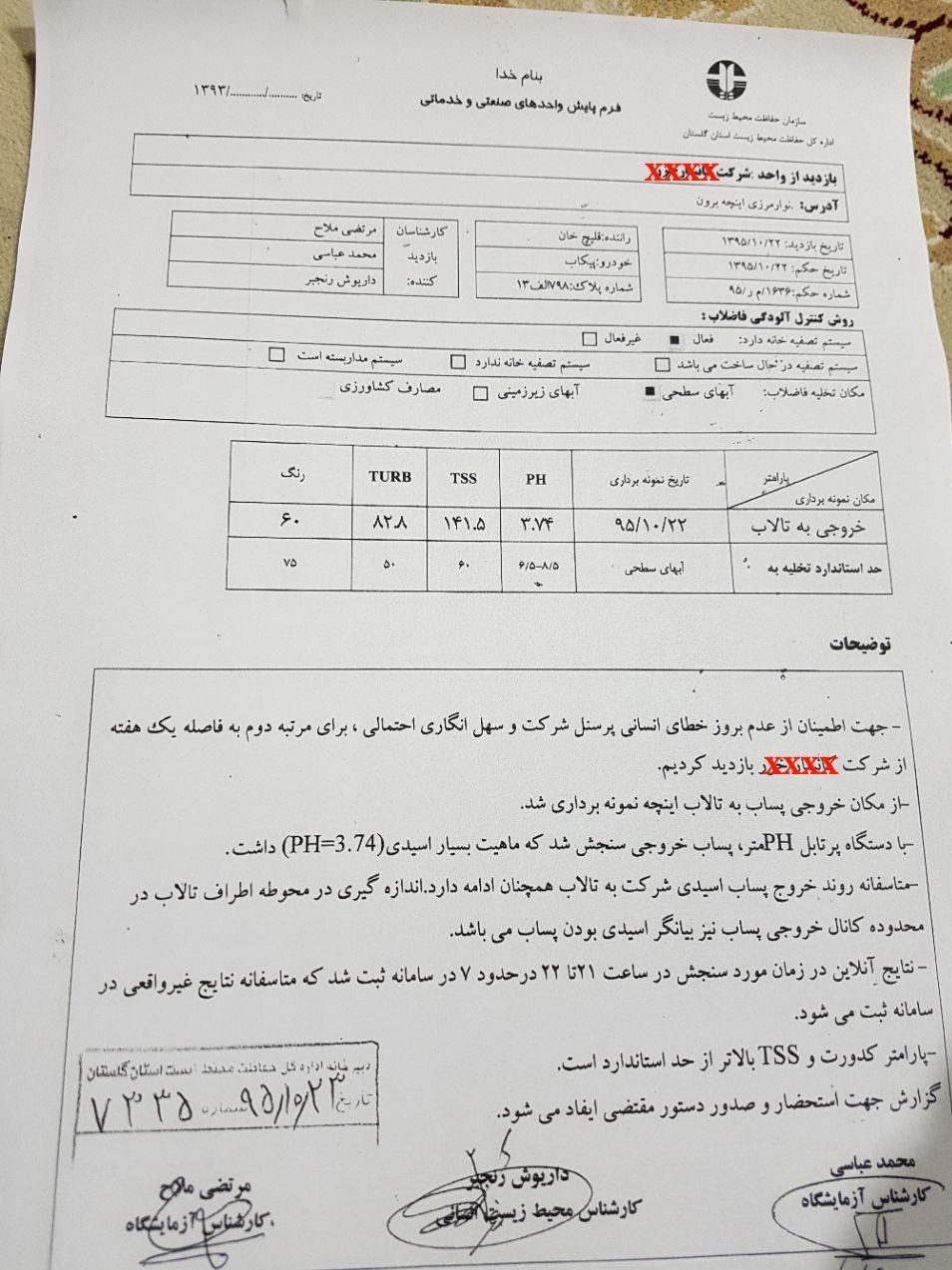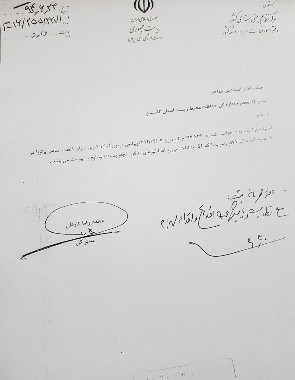 جمعی از کارشناسان محیط زیست، از آب و رسوبات کف تالاب اینچه در محل ورود پساب این کارخانه، نمونهبرداری کرده و نمونهها برای انجام آزمایش به سازمان انرژی اتمی میسپارند. نتیجه اعلام شده از سوی این سازمان، وجود عناصری متعدد رادیواکتیو در نمونه را تایید میکند. عناصری که به طور طبیعی در آبهای زیرزمینی وجود دارند اما اکنون به عنوان پساب به طور مستمر در محیط تالابی منطقه در حال تجمع هستند. عناصری که تا هزاران سال در محیط زیست باقی خواهند ماند.
