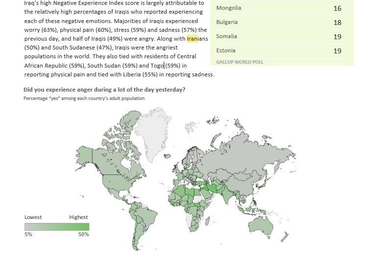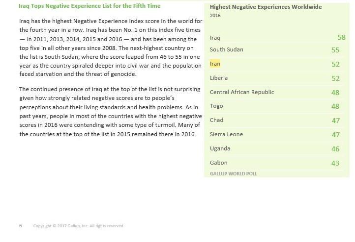 همچنین این گزارش با مطالعه بهروی وضعیت احساسات مردم 142 کشور جهان تنظیم شده است.