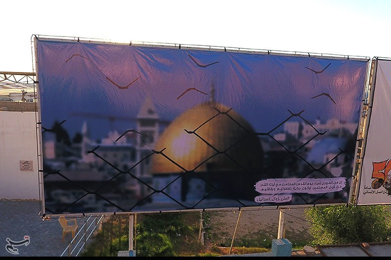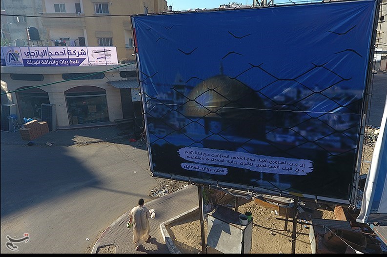 در همراهی با پویش جهانی #تا_نابودی_اسرائیل ، #حتى_زوال_اسرائیل و #DeleteIsrael در غزه تحت محاصره، بیانات امام خمینی(ره) و مقام معظم رهبری ،به صورت بنر در سطح شهر نصب شد.