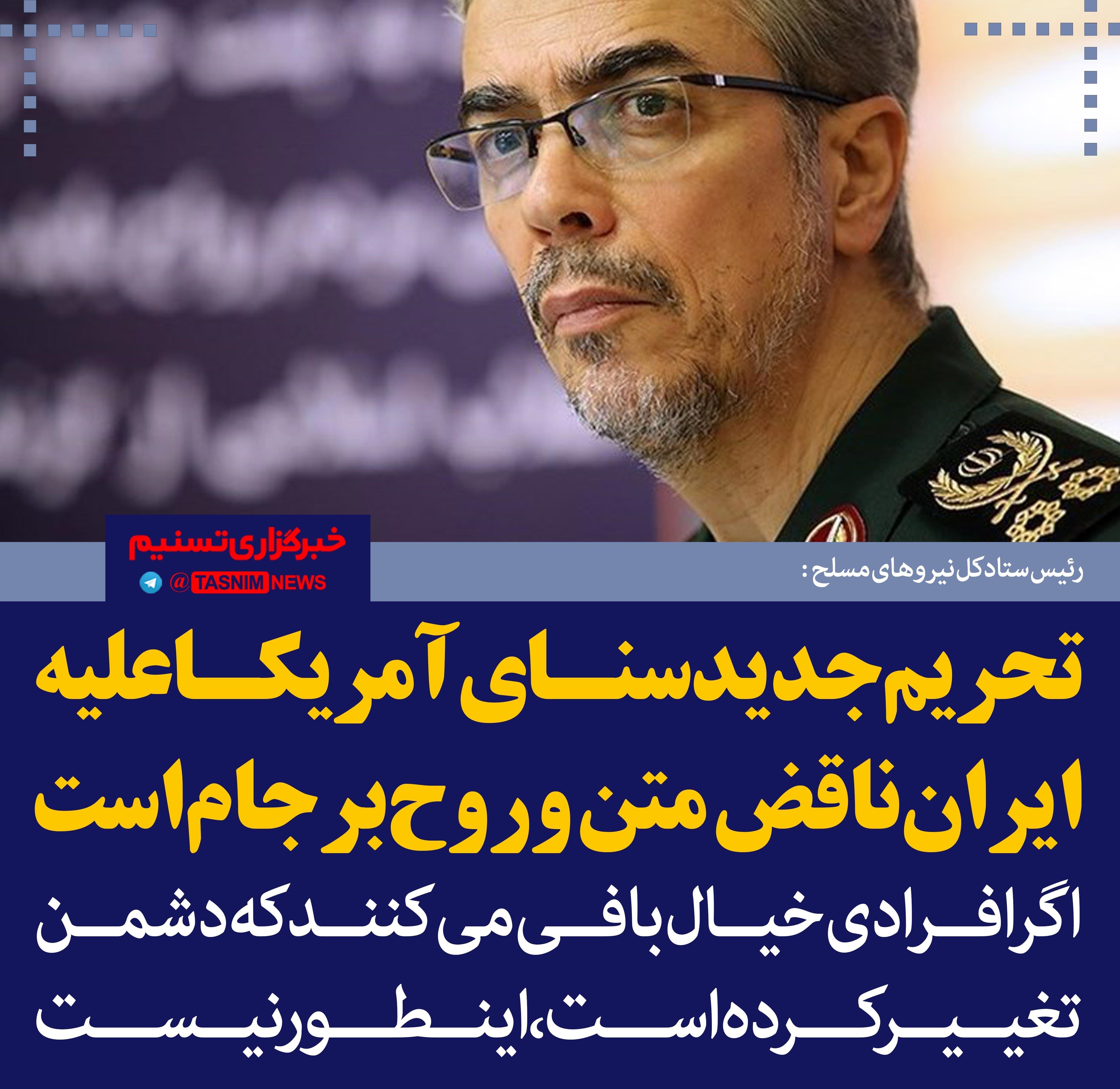 رئیس ستاد کل نیروهای مسلح گفت: تحریم جدید سنای آمریکاعلیه ایران، ناقض متن و روح برجام است.