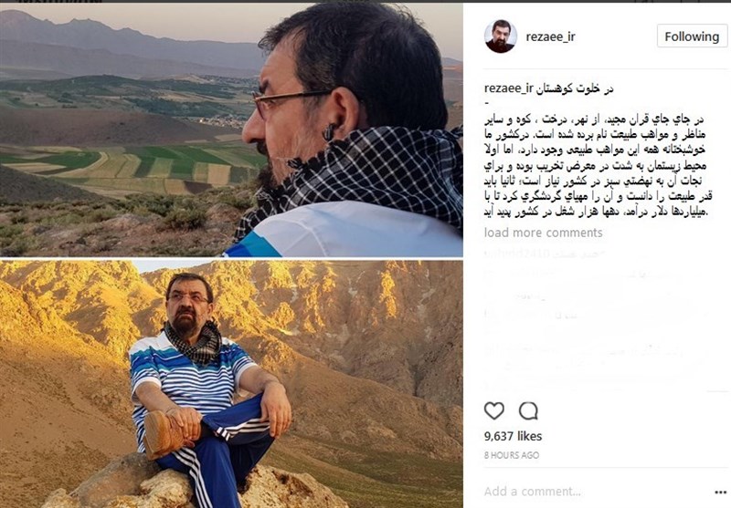 به گزارش باشگاه خبرنگاران پویا، محسن رضایی دبیر مجمع تشخیص مصلحت نظام در مطلبی در اینستاگرامش با عنوان « در خلوت کوهستان»  نوشت: محیط زیست‌مان به شدت در معرض تخریب است و برای نجات آن به نهضتی سبز در