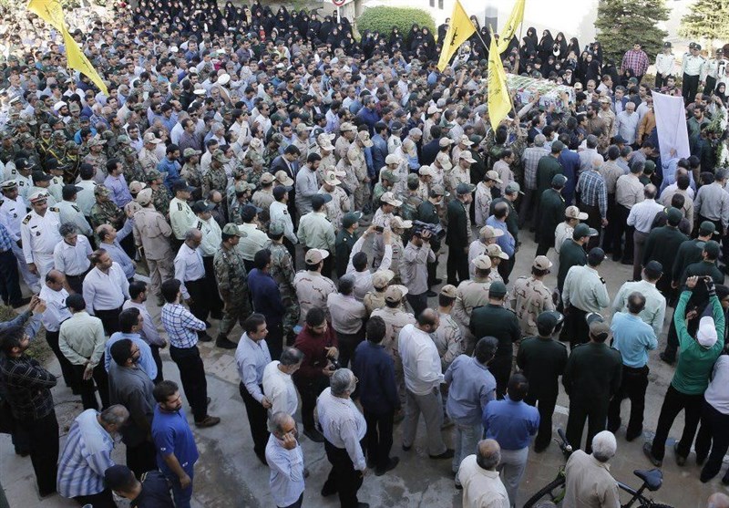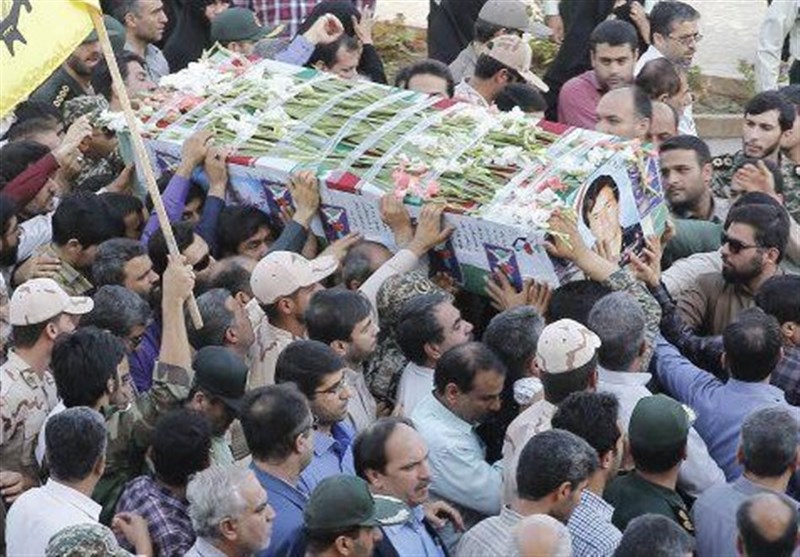 در این مراسم با شکوه که نماینده ولی فقیه در استان بوشهر، معاون استاندار، فرماندهان نیروهای مسلح استان بوشهر و قشرهای مختلف مردم شهیدپرور حضور داشتند شرکت‌کنندگان با شعارهای "حسین حسین شعار ماست، شهادت افتخار ماست"، "الله اکبر"، "مرگ بر آمریکا"، "مرگ بر آل‌سعود"، "مرگ بر داعش" و "مرگ بر اسرائیل" ضمن محکوم کردن جنایت‌های گروه‌های تروریستی تکفیری، پیکر این شهیدان والامقام را  با شکوه هر چه تمامتر تشییع کردند.