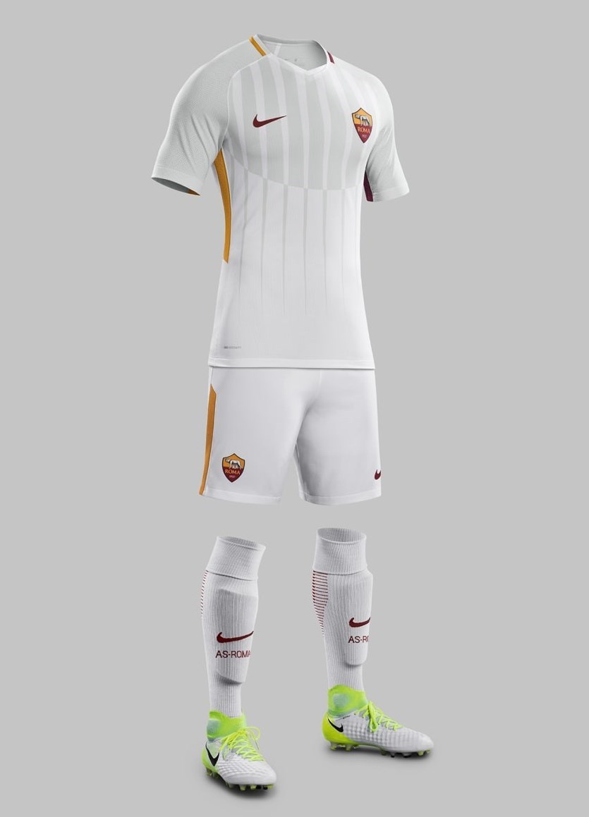 به گزارش خبرگزاری تسنیم، باشگاه رم ایتالیا به طور رسمی از پیراهن دوم خود برای فصل 18-2017 رونمایی کرد. پیراهن دوم نایبقهرمان فصل گذشته سری A ایتالیا یکدست سفید رنگ است و رنگهای جزئی زرد و قرمز هم در آن دیده میشود. این پیراهن تولید کمپانی پوشاک ورزشی «نایکی» است.