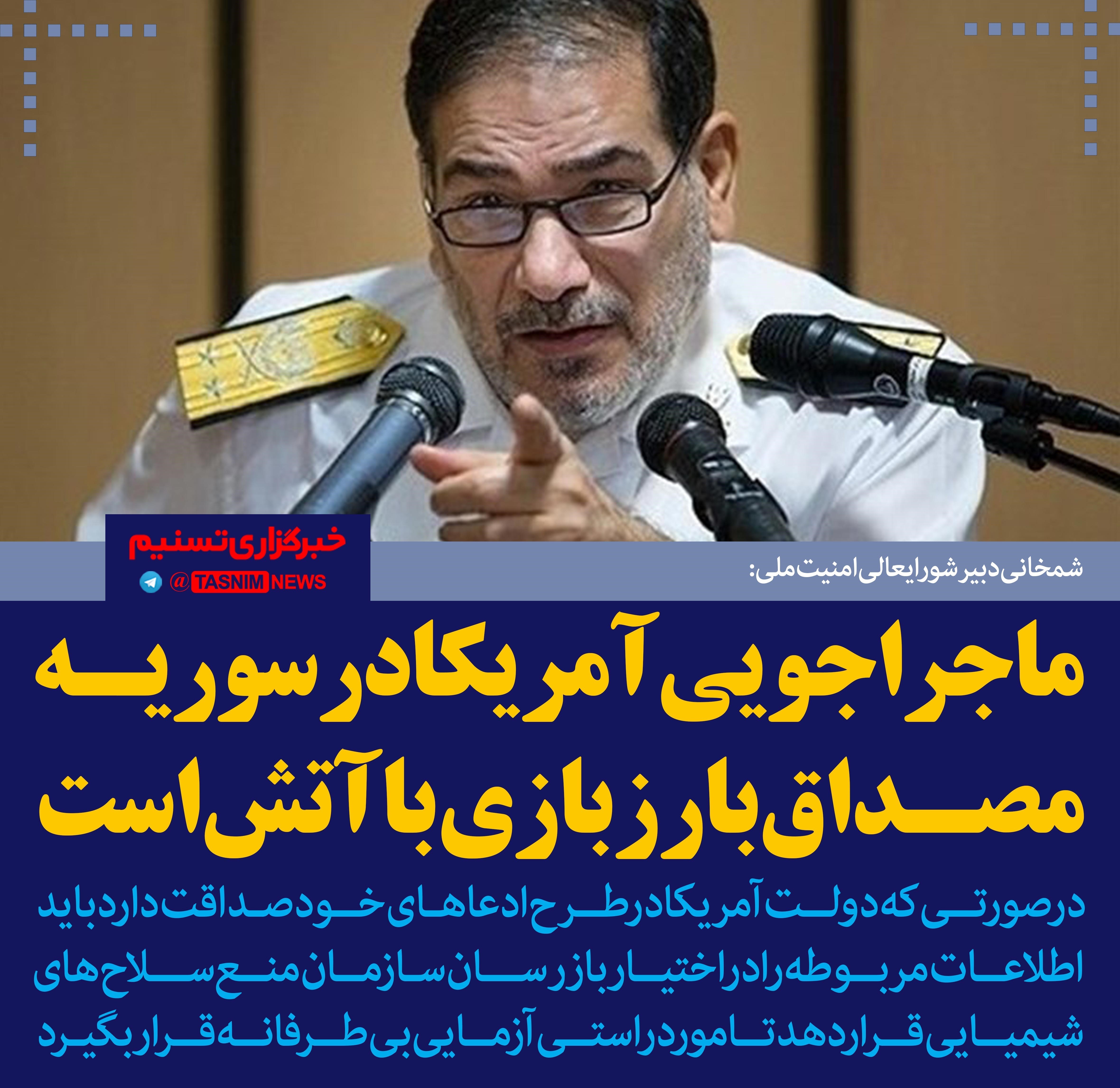 فتوتیتر/شمخانی: ماجراجویی آمریکا در سوریه مصداق بارز بازی با آتش است