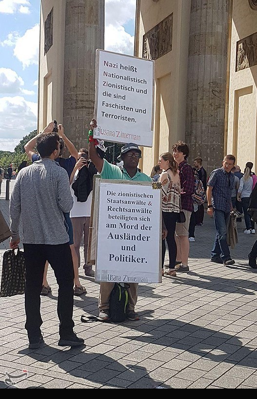 به گزارش گروه دفاتر خارجی خبرگزاری تسنیم، «اسامه تسیمرمن» را هرکس که به میدانهای پرتردد شهر برلین رفت و آمد داشته باشد، حتماً یک بار دیده است؛ مرد میانسال سیاهپوستی که عینک به چشم دارد و پلاکاردهایی با مضامین ضدّصهیونیستی را بر دوش خود و بالای سرش حمل میکند. عکس و فیلم و مقالههای متعددی در سایتهای اینترنتی به طرفداری یا علیه وی وجود دارد.