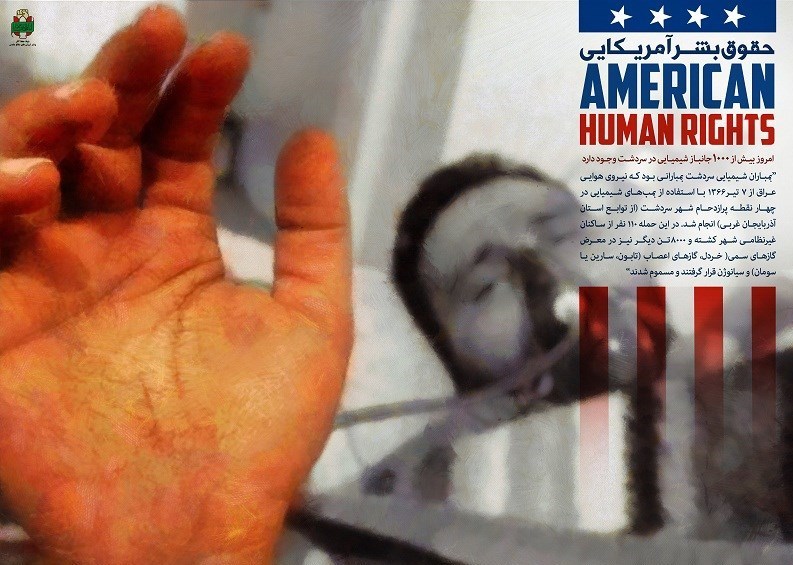 مجموعه پوسترهای «حقوق بشر آمریکایی» به جنایت‌های آمریکا در ایران و منطقه می‌پردازد که طی این جنایت‌ها بسیاری از مردان، زنان و کودکان بی گناه کشته شدند.