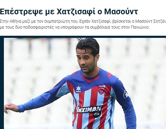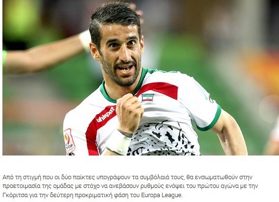 این سایت معتبر ورزشی یونان در ادامه این خبر آورده است: 2 بازیکن ایرانی پس از عقد قراردادهای خود به تمرینات آماده‌سازی تیم پانیونیوس ملحق می‌شوند. آنها باید خود را مهیای اولین بازی تیم پانیونیوس در مرحله دوم حذفی لیگ اروپا برابر تیم گوریسای گرجستان کنند.