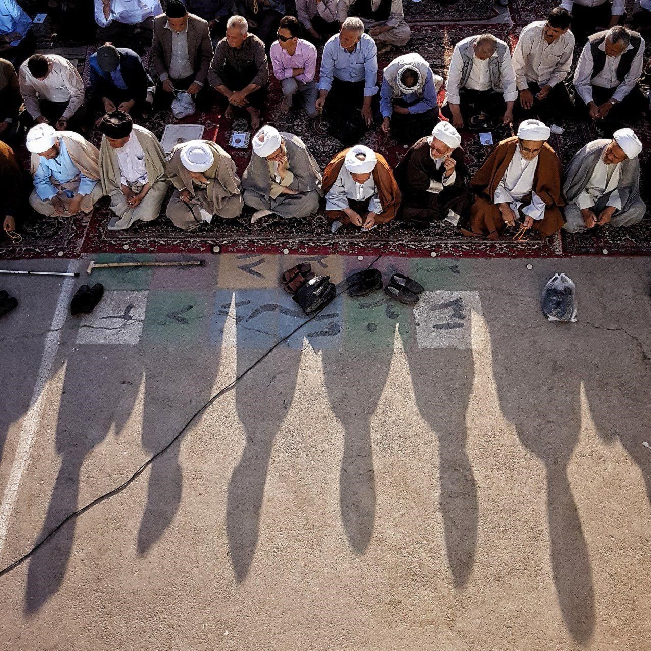 وی در توضیح عکس خود نوشته: نماز عید فطر در مدرسه آیتالله کاشانی گلشهر به امامت آیتالله موحدی نجفی، در این مدرسه همه ساله مهاجرین و انصار در کنار هم نماز عید فطر را به مرجع تقلید افغانستانی اقامه میکنند.