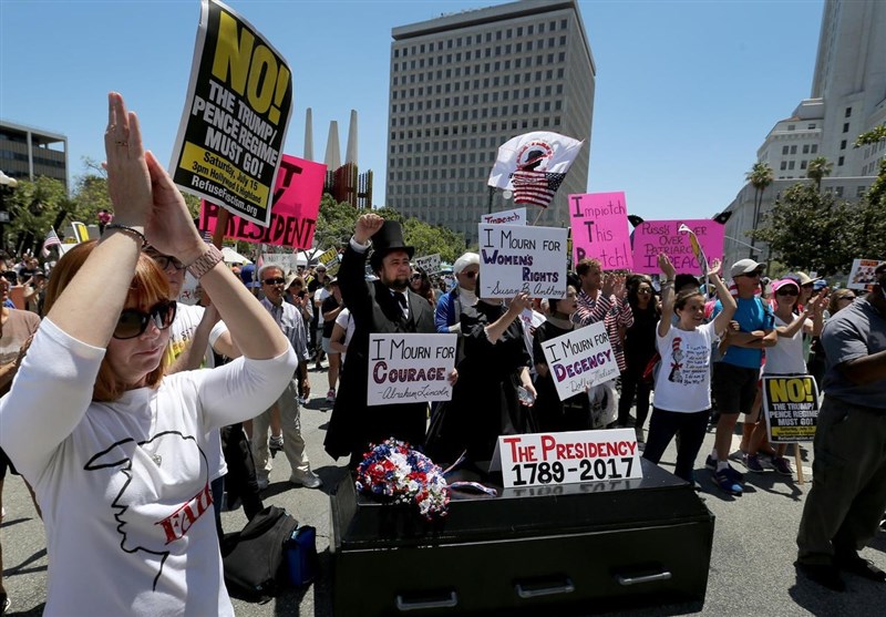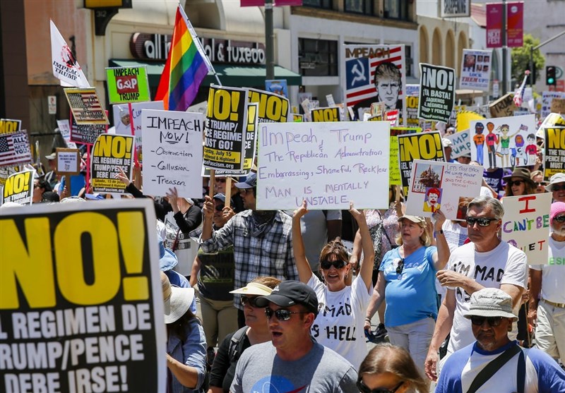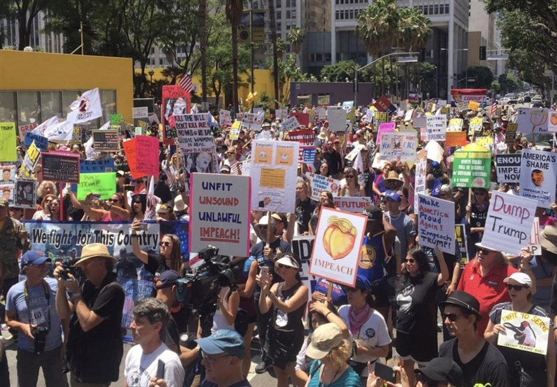 به گزارش گروه بین الملل خبرگزاری تسنیم به نقل از روزنامه آمریکایی «لس آنجلس تایمز»، همزمان با انتشار اخباری مبنی بر تلاش بی سرو صدای قانونگذاران دموکرات مجلس نمایندگان آمریکا برای ارائه طرح استیضاح «دونالد ترامپ» رئیس جمهور آمریکا، هزارا نفر از مردم آمریکا روز گذشته (یکشنبه) با اعلام حمایت از استیضاح ترامپ در لس آنجلس تظاهرات و راهپیمایی کردند.
