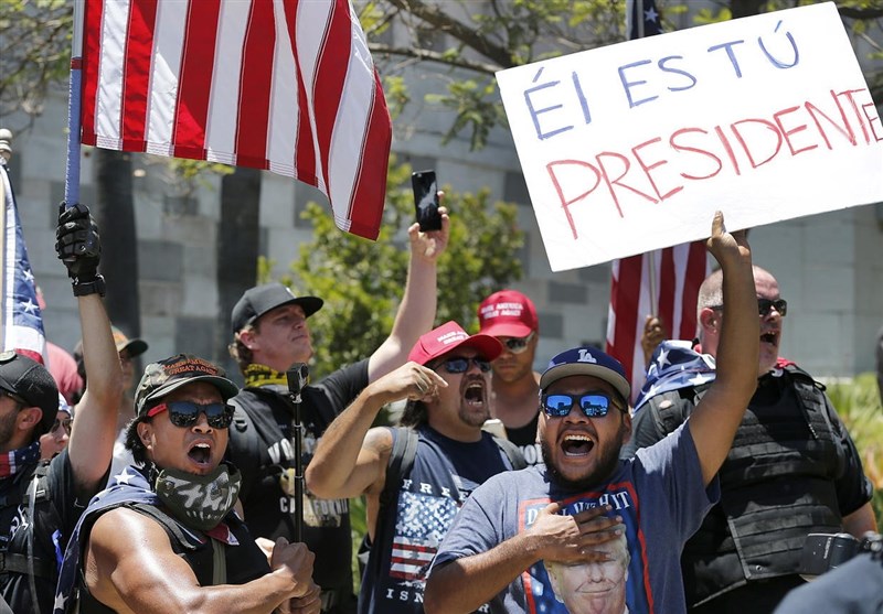 حامیان ترامپ خطاب به معترضان رئیس جمهور آمریکا فریاد «شما جعلی هستید» سر می دادند.